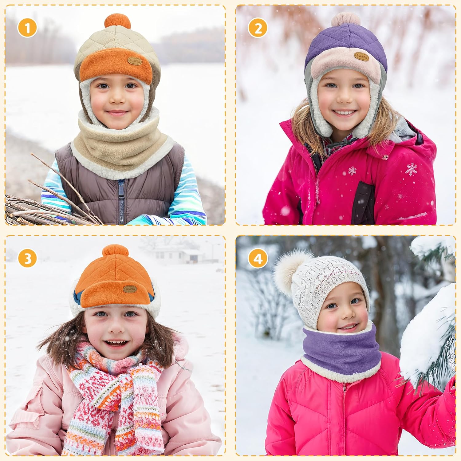 Kids Winter Hat Scarf Set Anti-pilling Earflap Hat WHK002