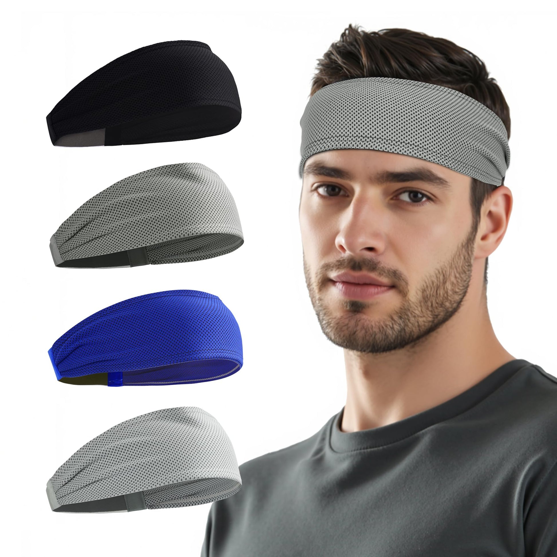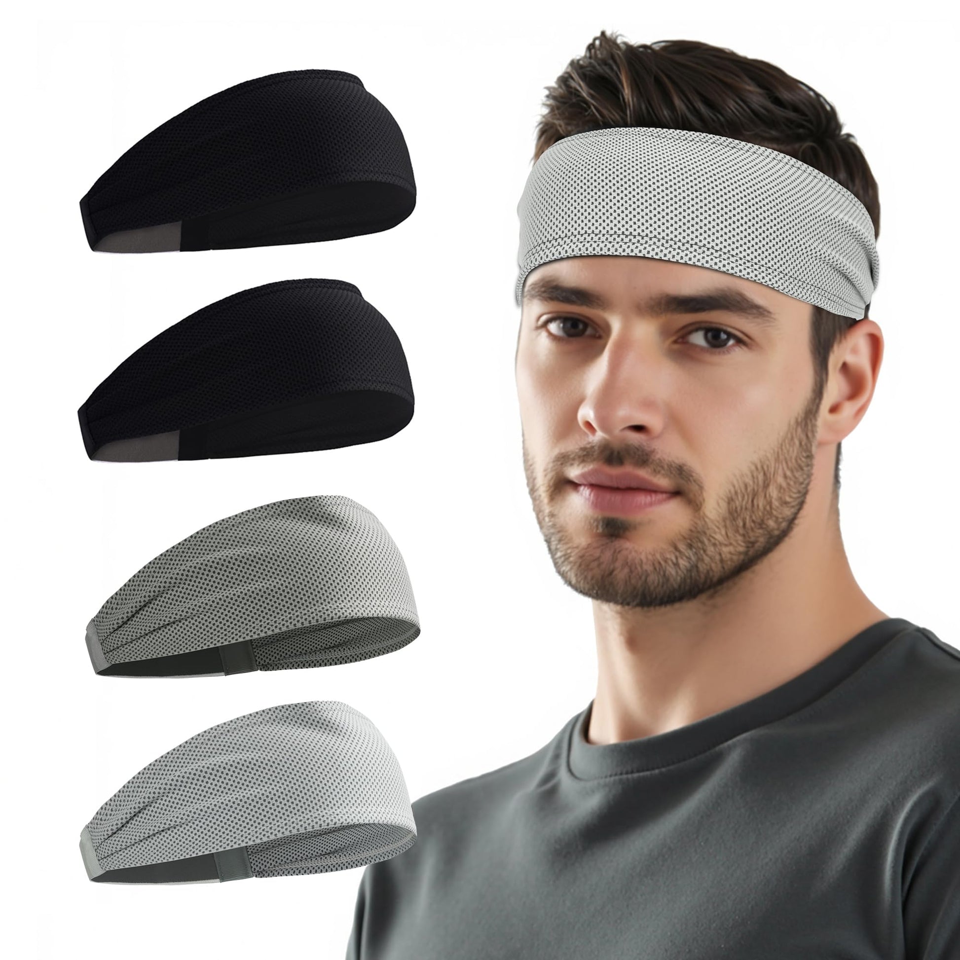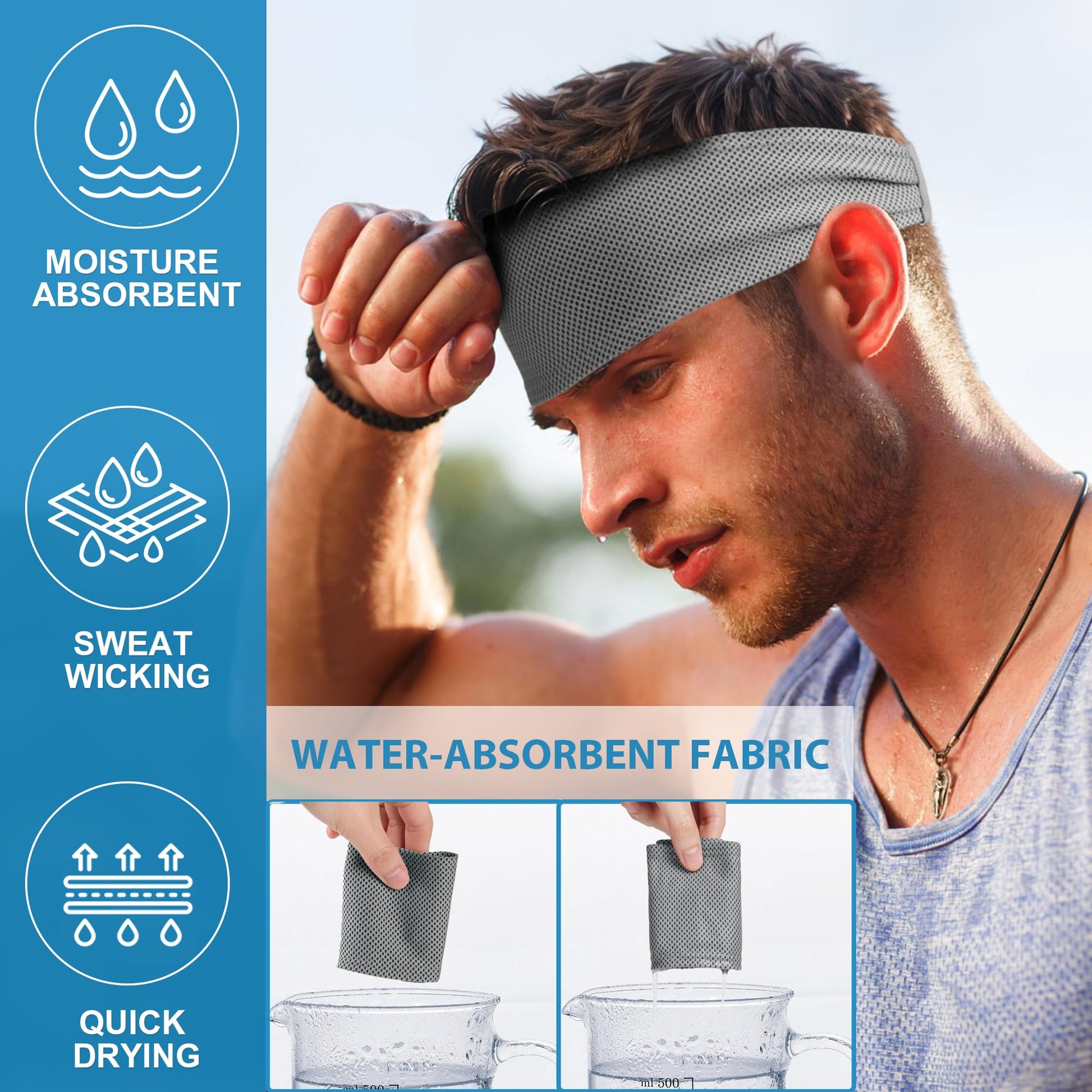 Sukeen Cooling Sports Headbands for Men: Instant Cooling Moisture Wicking Sweatbands Non-Slip, Quick-Dry Elastic Fabric Mens Headband for Gym Running Tennis Training Workout