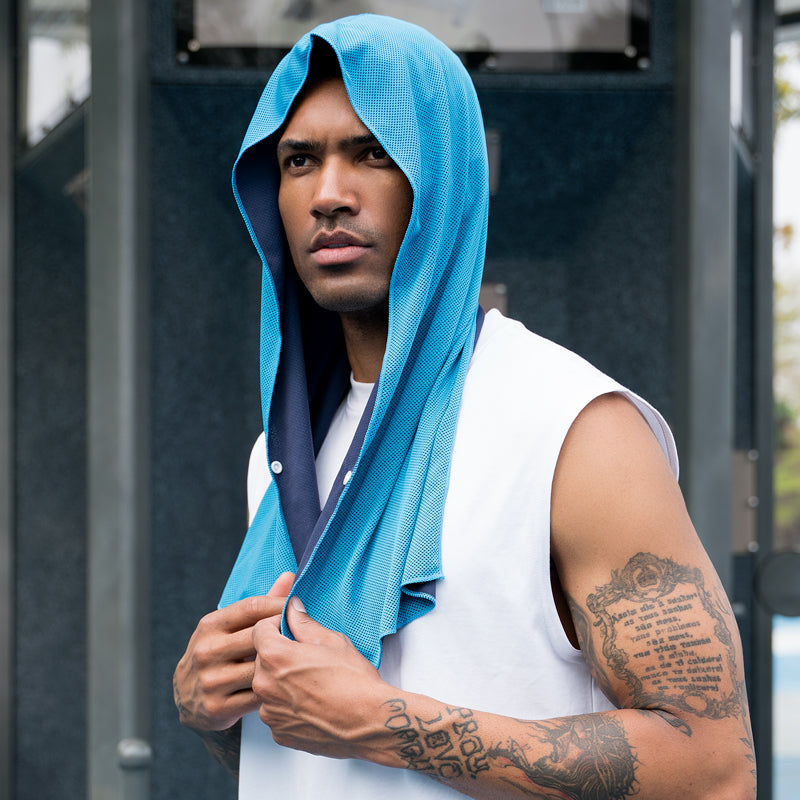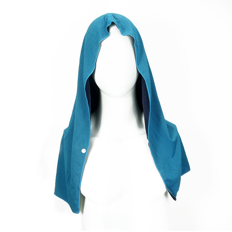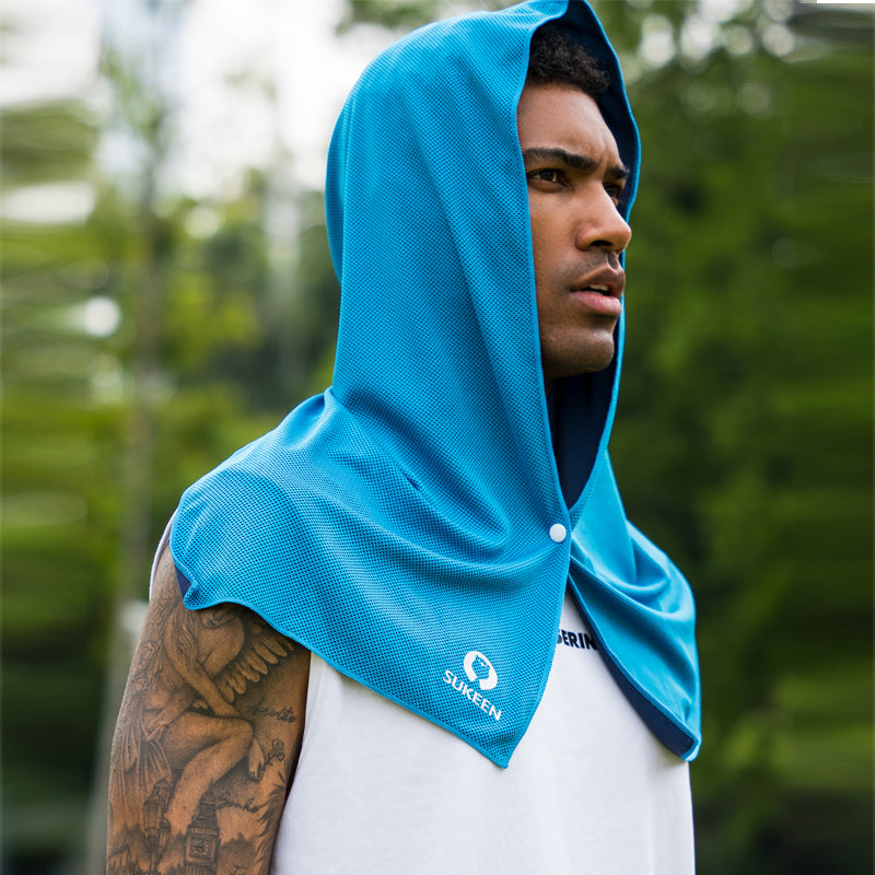 O1COOL® is a general-purpose solid-color cooling towel designed by SUKEEN. Its fabric is composed of 55% Polyester/45% Polyamide. Its design concept is to reduce sweating and maintain body temperature balance during exercise. Cut over the shoulders, this cooling hoodie towel cools your head while keeping your neck at bay. At the same time, it has sun protection effect, which can effectively protect your skin when working outside.
