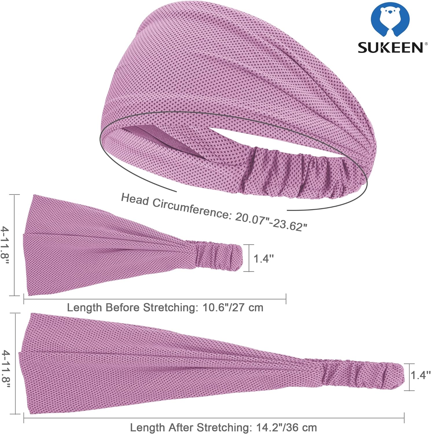 COMFORTABLE & NON SLIP HEADBAND: Sukeen workout headbands for men and women, The widened headband can be folded and worn in front of the forehead or cover the entire head, 10.6 inches long, can be stretched to 14.2 inches, suitable for different women's head circumference or men's, very comfortable to wear without tight feeling to your head. And you don't have to worry about the sweatband slipping off, as it has an elastic band closure.