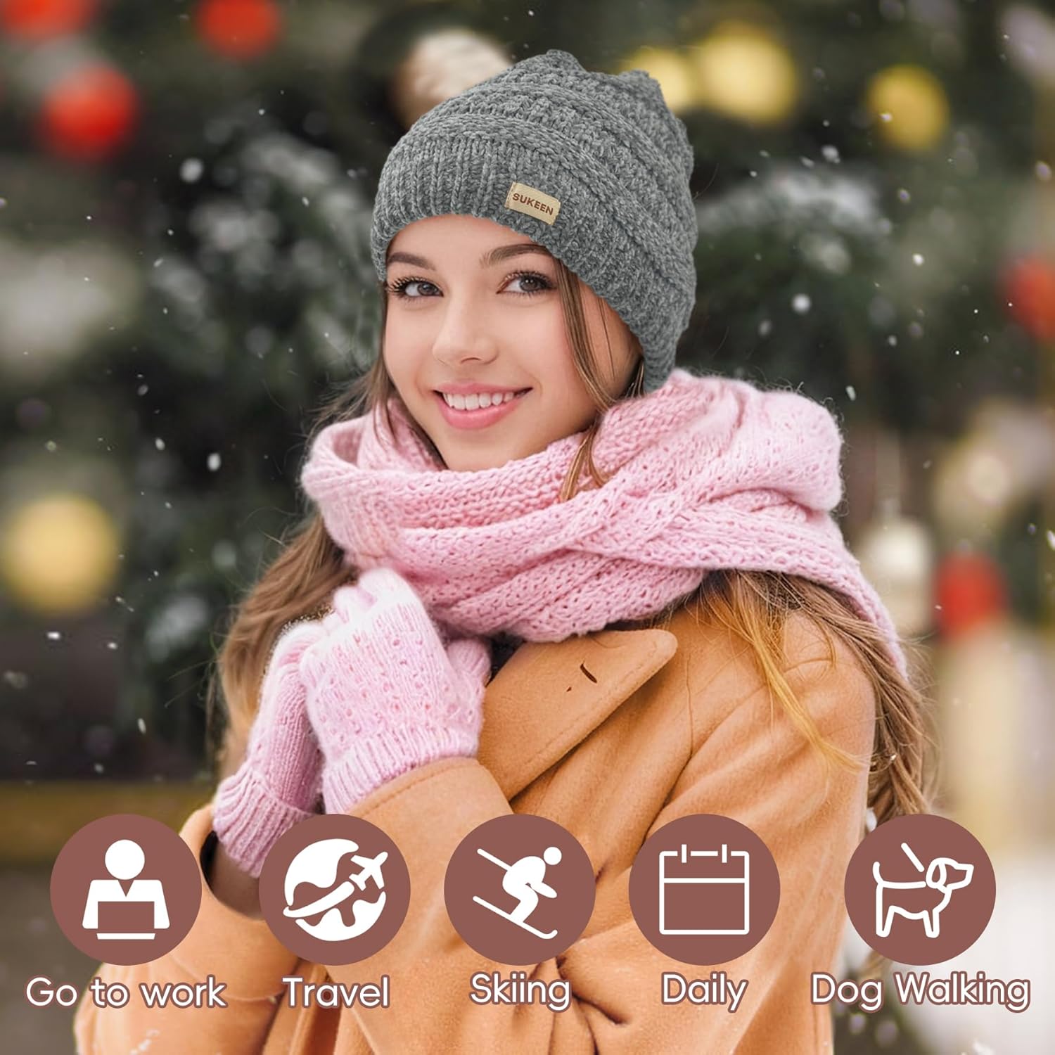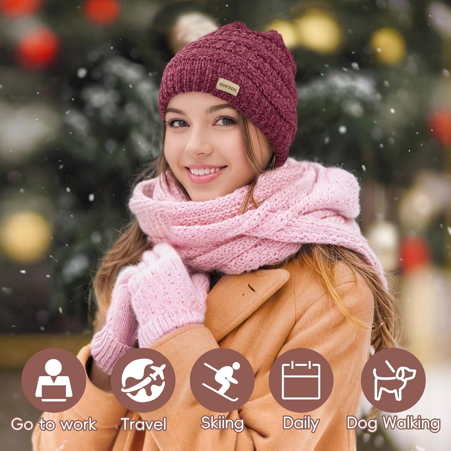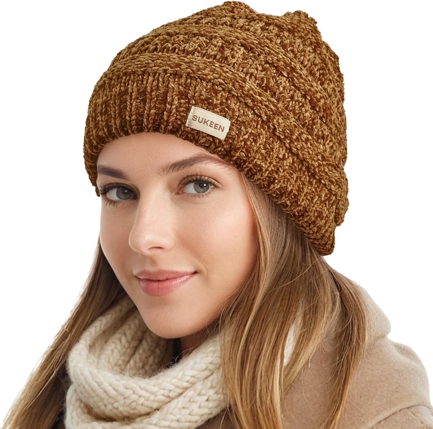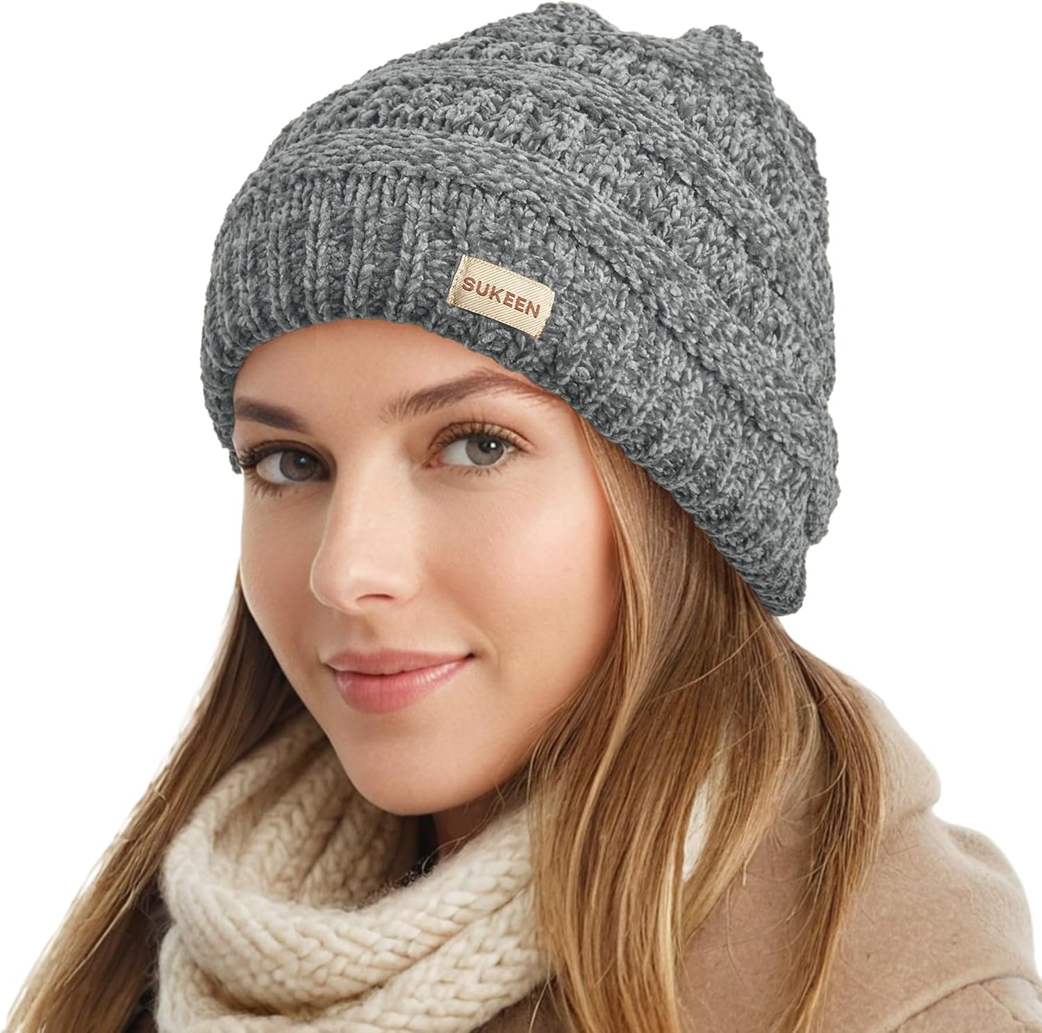 Sukeen Knit Beanie Hat for Women Thick Fleece Lined Winter Hat Warm Skull Cap Fashionable Knit Hat for Outdoor