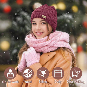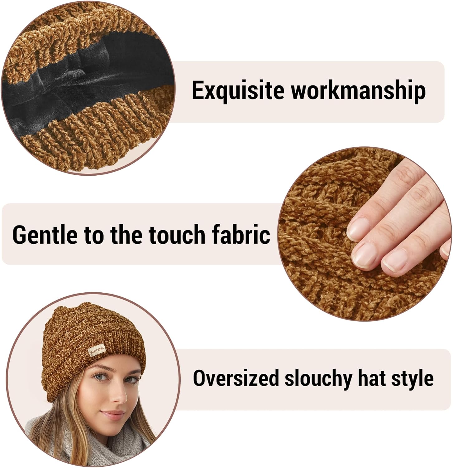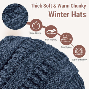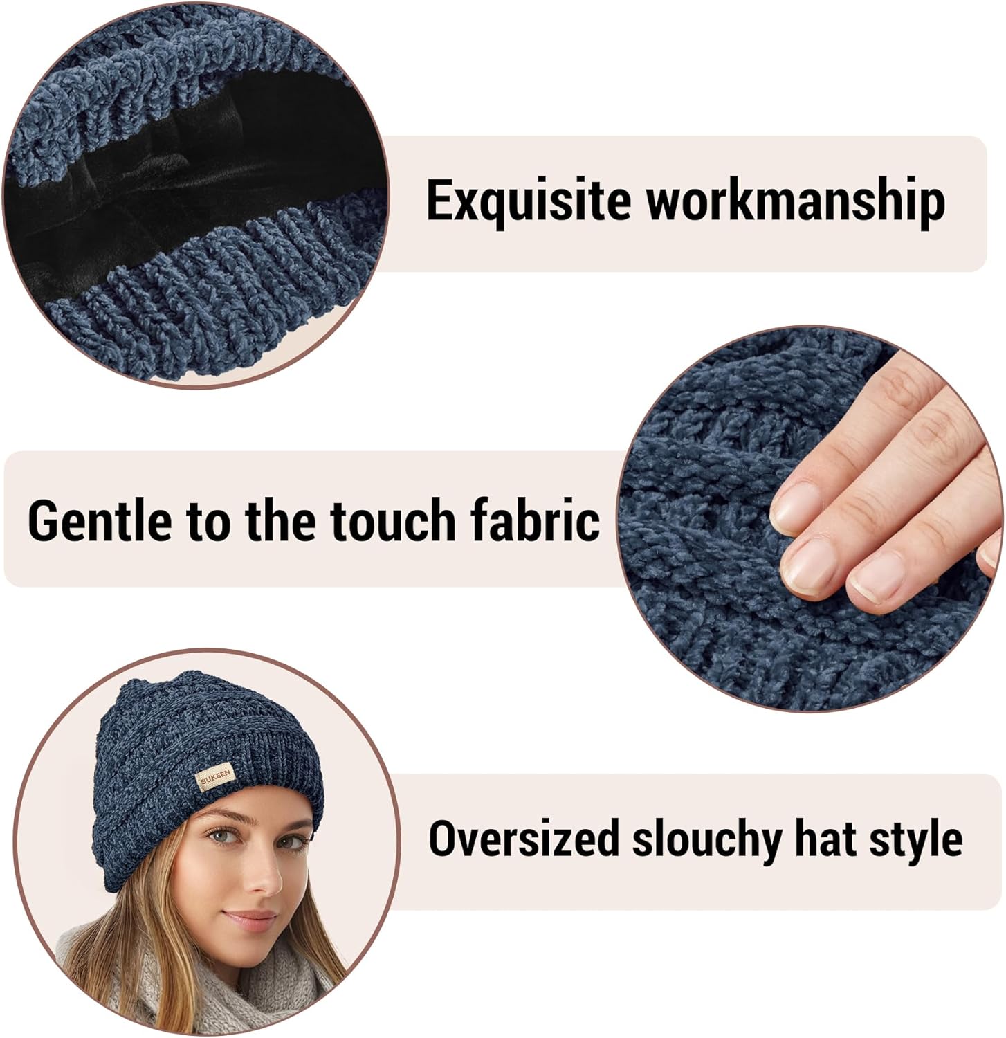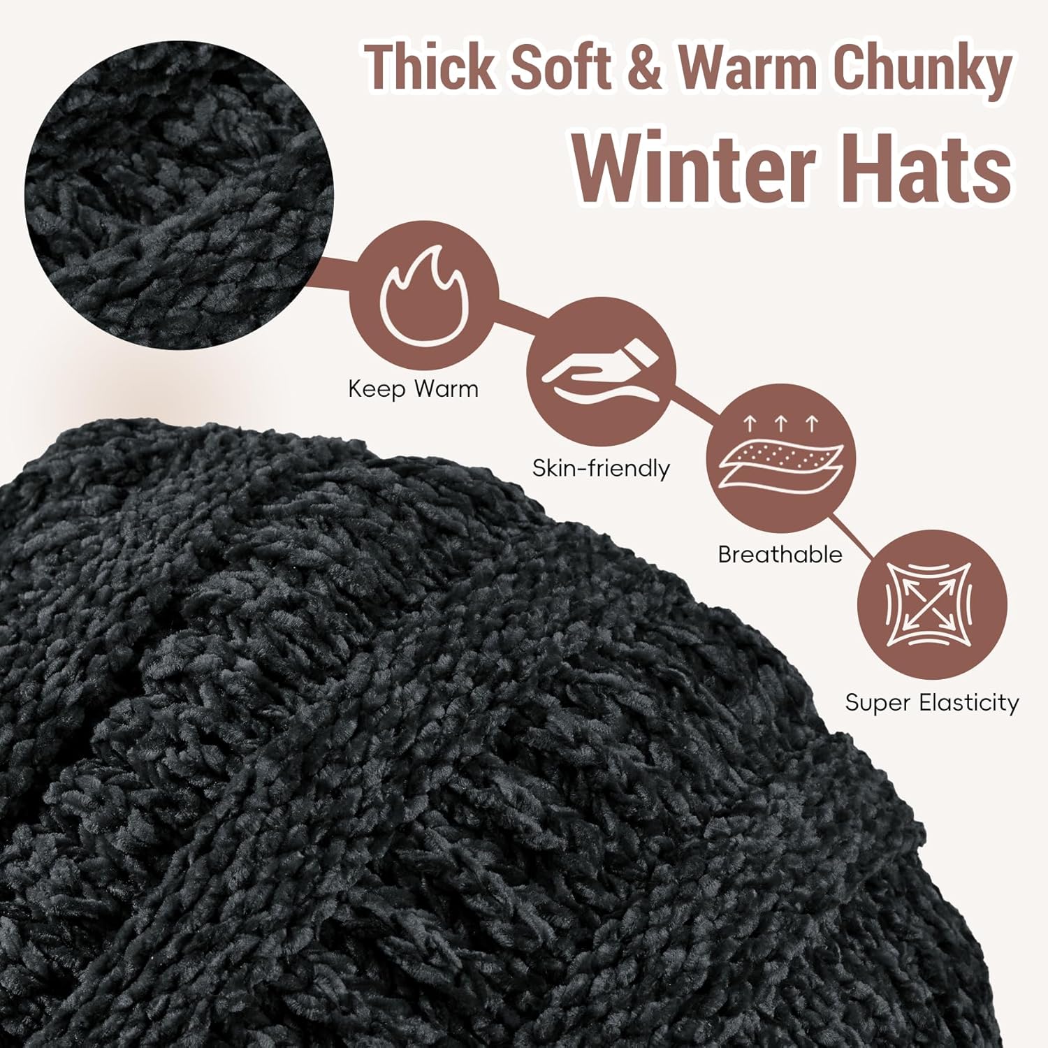 Sukeen Knit Beanie Hat for Women Thick Fleece Lined Winter Hat Warm Skull Cap Fashionable Knit Hat for Outdoor