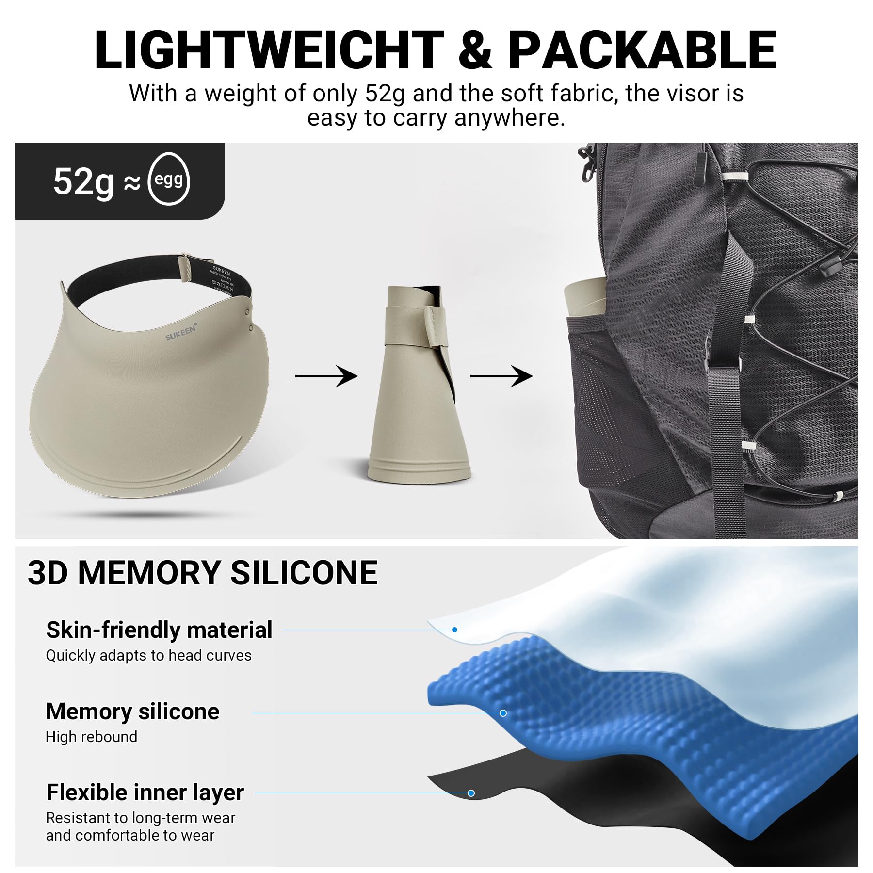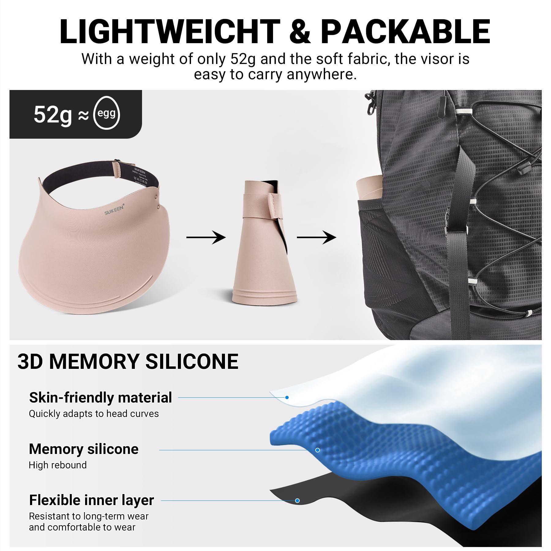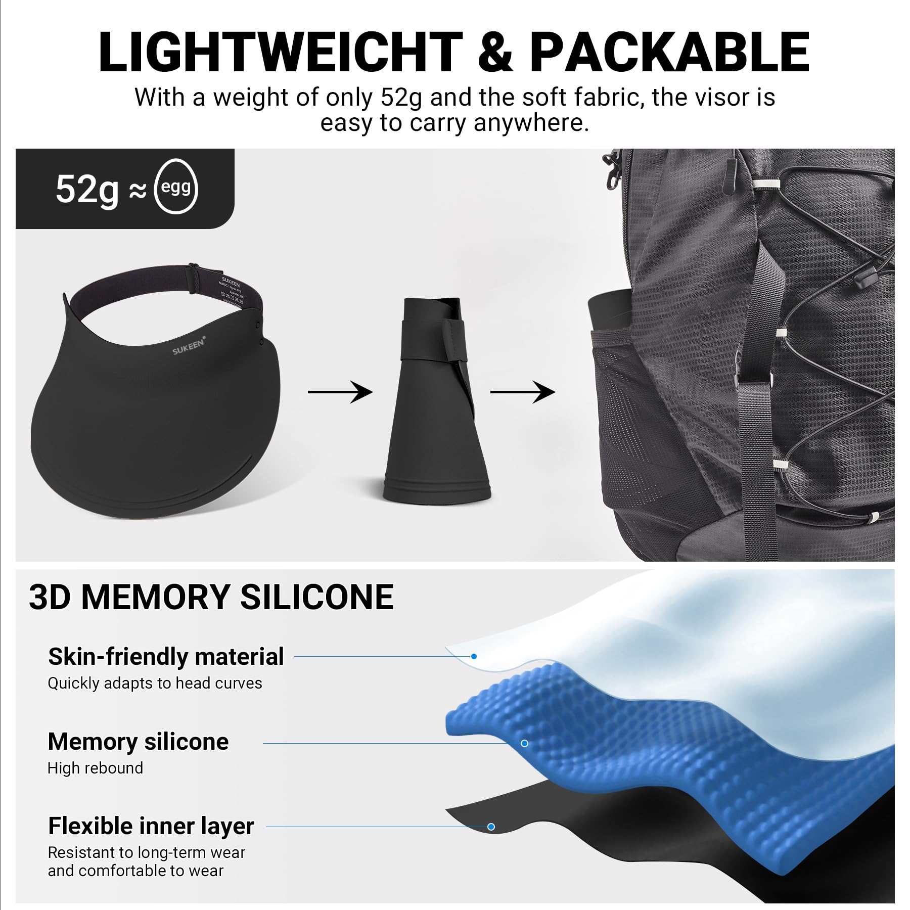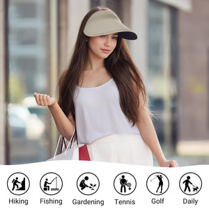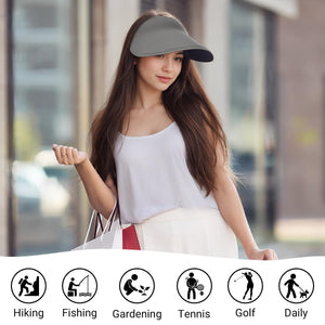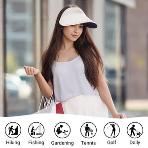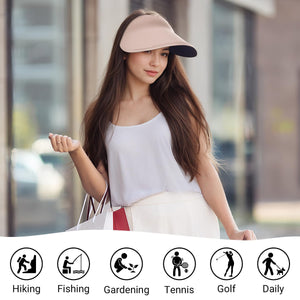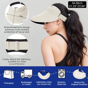 Sukeen Wide Brim Sun Visor Hat for Women Men,UPF50+ Seamless Sun Hats Foldable Ponytail Beach Hats for Daily Outdoor Sport